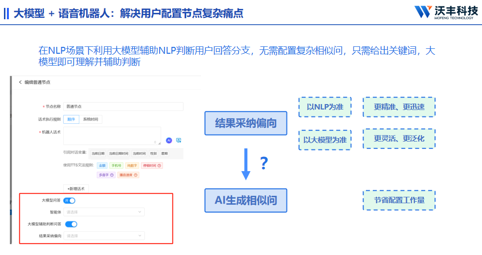 其次是意向识别精准度。这直接决定机器人的“筛选价值”,若将低意向客户大量转接人工,反而增加工作量。某保险企业曾使用某品牌机器人,意向识别准确率仅70%,人工跟进效率低下;换成沃丰科技机器人后,依托企业专属知识库与客户画像标签体系,意向识别准确率提升至95%,高意向客户转接率下降40%,人工坐席效率提升3倍。