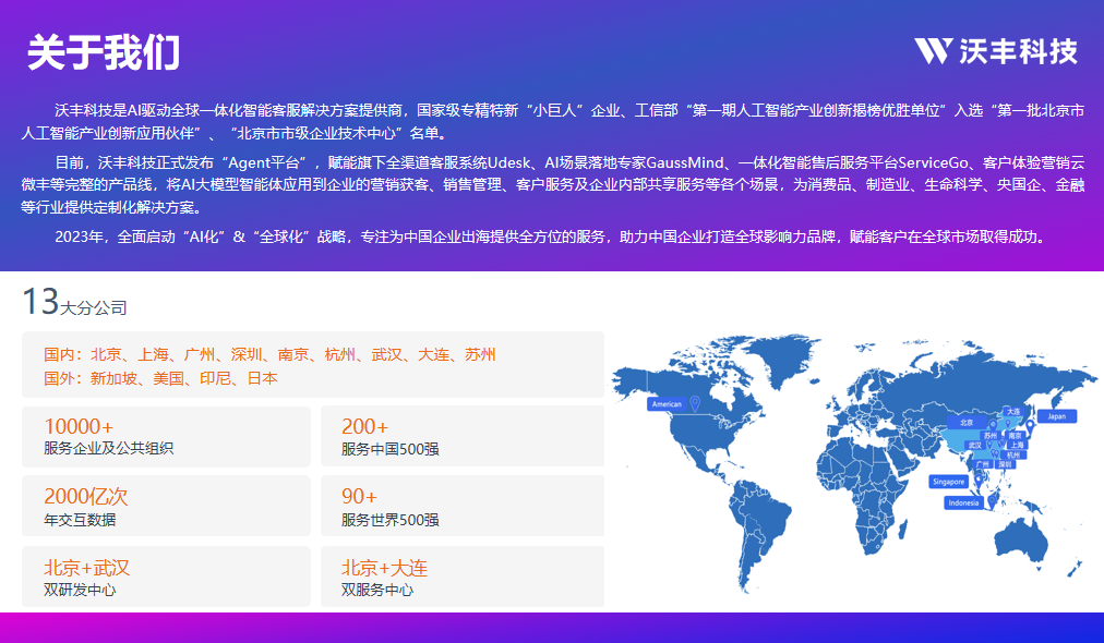 沃丰科技能斩获高口碑,核心在于其解决方案精准破解企业服务痛点,构建了“AI原生+全场景+全周期”的综合竞争力,累计服务10000+企业及公共组织,其中包括90+世界500强企业,年交互数据超2000亿次,实战成效获得广泛认可。